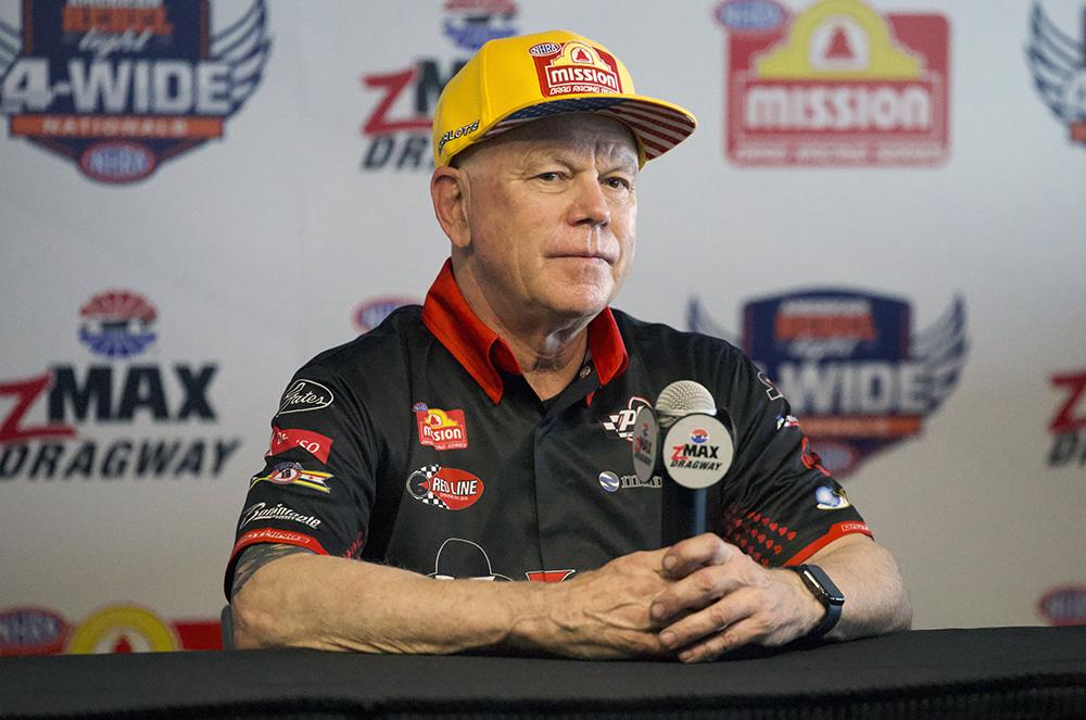 Top Fuel low qualifier Doug Kalitta, Austin Prock, Matt Hartford, and Richard Gadson won the Mission #2Fast2Tasty NHRA Challenge titles at the American Rebel Light NHRA 4-Wide Nationals. Paul Lee, Dallas Glenn, and Gaige Herrera also were low qualifiers.