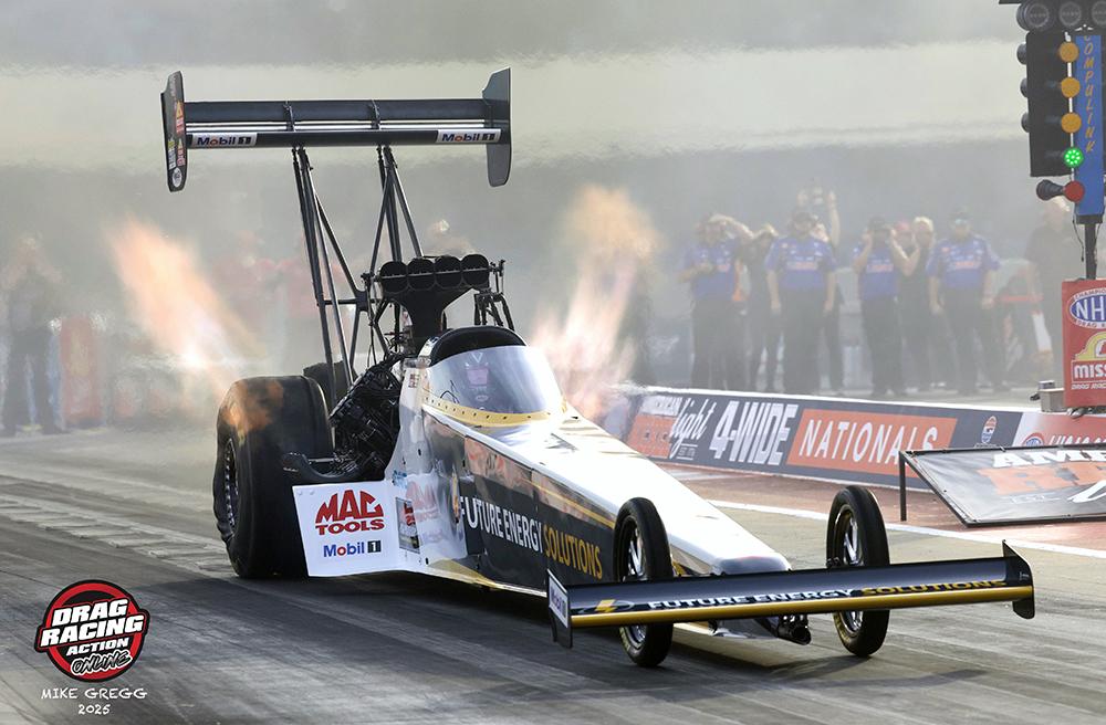 Austin Prock (Funny Car), Dallas Glenn (Pro Stock) and Matt Smith (Pro Stock Motorcycle) also won the fifth of 20 races during the 2025 NHRA Mission Foods Drag Racing Series season.