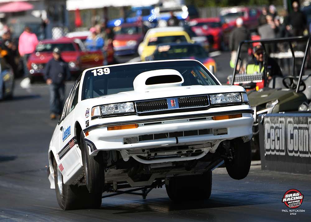 Day one of the Cecil County Lucas Oil divisional, the last of the event that racers could add to their D1 points for 2025, was, after the track warmed up, a perfect day. Temps in the 60’s added to the legendary Cecil County bite, made for some personal bests for more than a few racers. The traction was so good, front wheel cars were leaving the starting line with their wheels in the air. But all seriousness aside, conditions were optimal