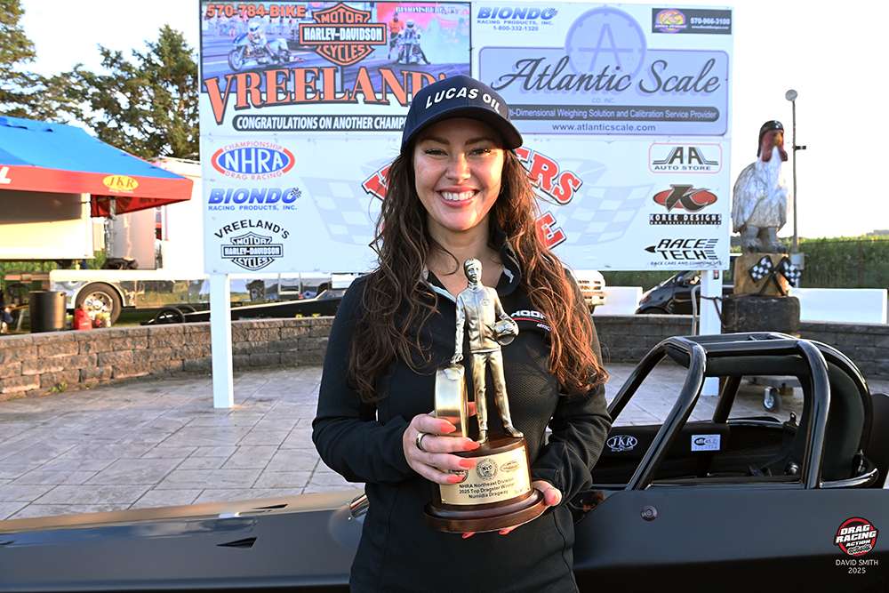 Finally, Jessica says, “This season reminded me how lucky I am to be part of the Division 1 family. This Top Dragster group is full of not just great racers, but great people. Racing against guys like Al Kenny, Vince Musolino, and Brandon Miller pushes you to be better every weekend, but they’re also the first to lend a hand when you need it. I’ll never forget Chuck Krepela crawling under my car past midnight in Virginia to help me get ready for the next day. My good friend Michael Handras has also been a huge help and supporter this season, and I’m so thankful for that. It’s that kind of sportsmanship and friendship that makes this division feel like home.”