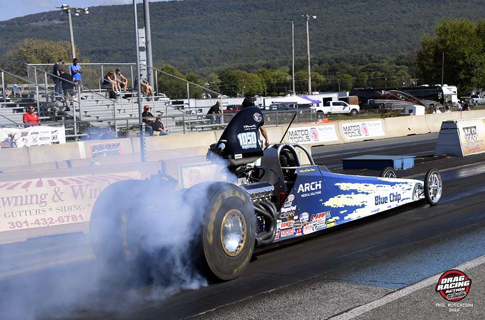 Morgret was the recipient of a few breaks during eliminations as Butch Bucher, the 2025 Top Dragster champ went red in the semis and Luken did the same in the finals leaving -0.004 too soon handing Morgret who lives in nearby Hagerstown MD, the easy win.