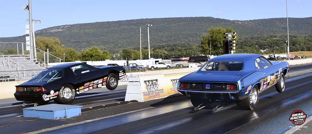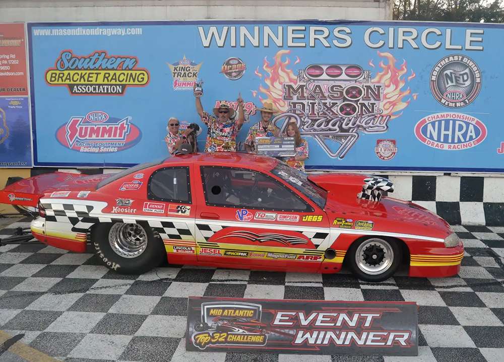 Mike Lang from Coopersburg PA, drove his Pontiac to a very important victory at Mason Dixon as the guy in the other lane, former .90 champ Bob Phillips and Lang were in a death match in the final with winner take all. Win the event, win the Mid Atlantic Super Gas title.