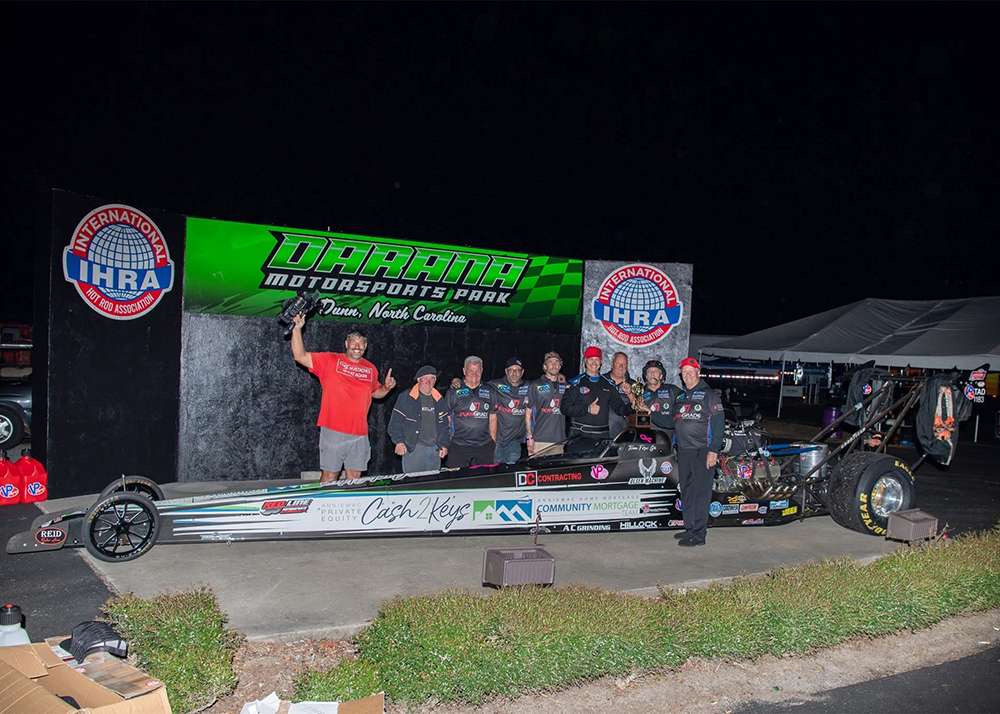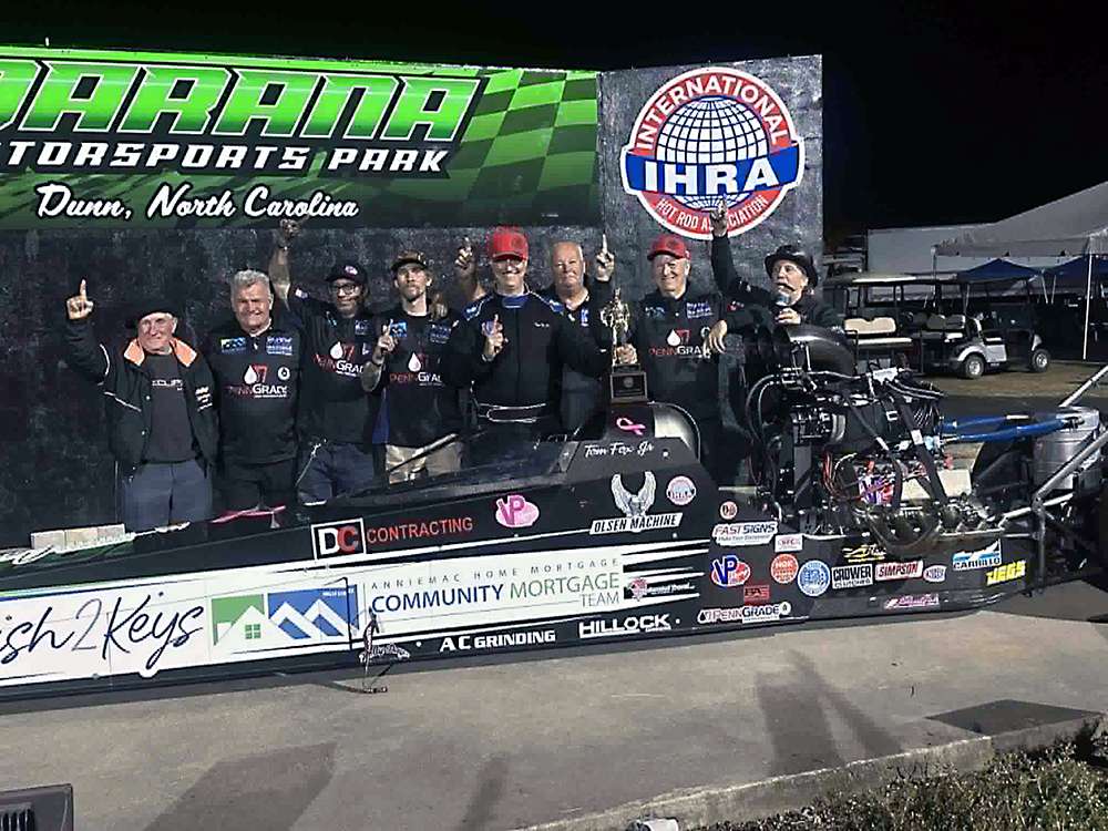 Cinnaminson NJ racer Tom Fox has been in the winner’s circle before in the AnnieMac Mortgage/Cash 2 Keys Top Alcohol dragster, but those wins were in quarter mile competition. At the recent IHRA Outlaw Nitro Series event at Darana Dragway in Dunn, North Carolina, Fox, a 56 year old senior mortgage banker drove his blown car to an historic eight mile win. A race he, at one point, was not even considering entering.