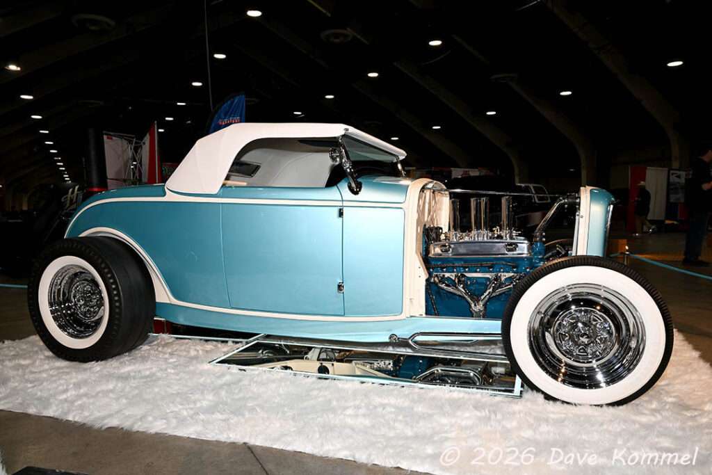 At the 76th annual Grand National Roadster Show, the prestigious America’s Most Beautiful Roadster is a ’32 Ford built by Squeeg’s Kustoms.