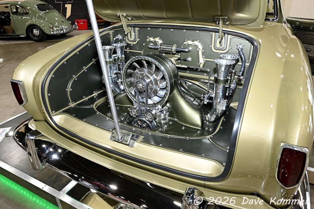 Given the top-shelf cars that show up to compete for the AMBR and Slonaker awards, it’s a good place to be inspired; and since engine bays are often the coolest part of a hot rod build, we thought you’d like to check out some of the stunning examples we found throughout the show. So with that, enjoy our gallery of killer engine bays from the 2026 Grand National Roadster Show. Oh, and just because the word Roadster is in the title doesn’t mean the show isn’t full of all sorts of hot rods from modernized muscle cars to classics and postwar rides and even a few boats.