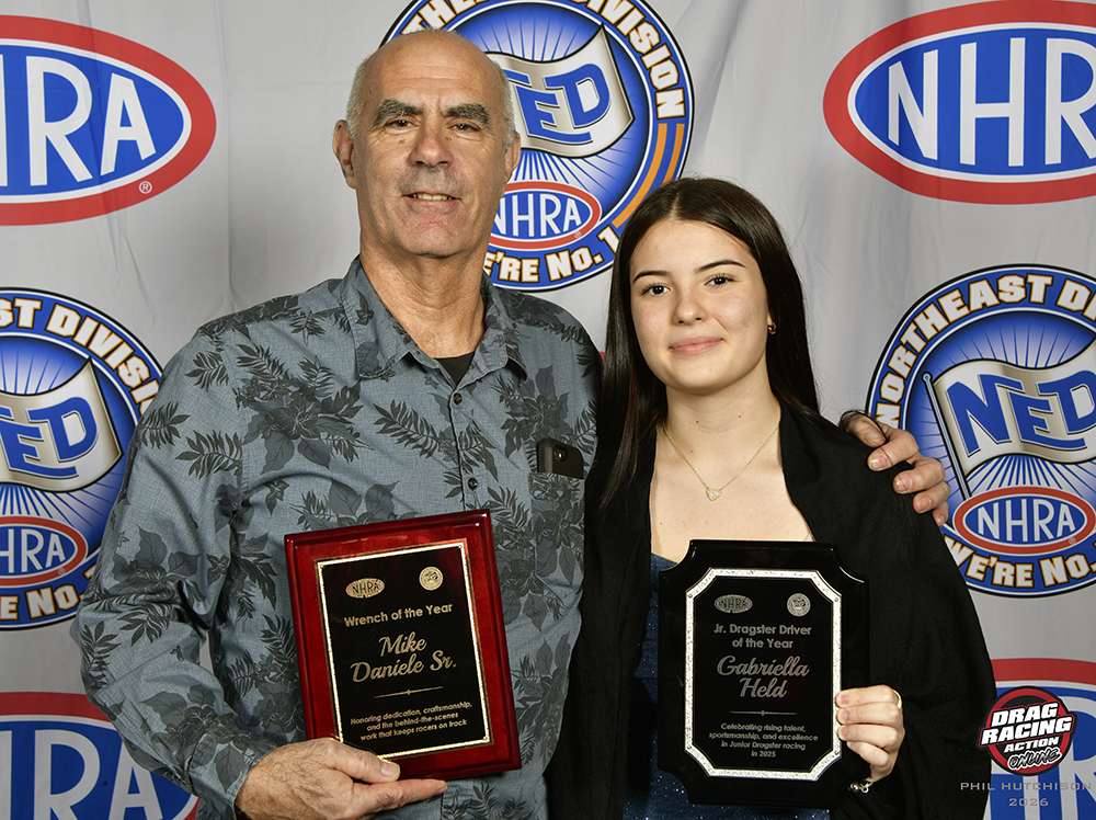“I was so surprised to hear my name called,” Daniele said. “I had no plans to go to the banquet but I had to go out to Williamsport to pick up a engine block and decided to come and see my granddaughter Gabriella win Junior Dragster driver of the year. It caught me totally off guard I wasn’t sure if I embarrassed anyone.”