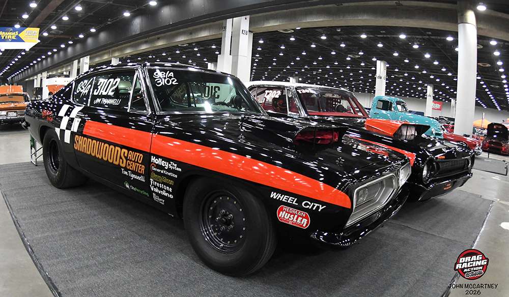 A major presence at the show was the Mopar Super Stock cars of Shadowoods Racing. The legendary Michigan-based Mopar nostalgia racing team, recognized for Super Stock drag racing and associated with Jim Tignanelli.