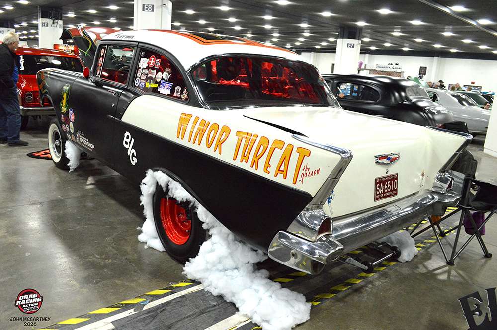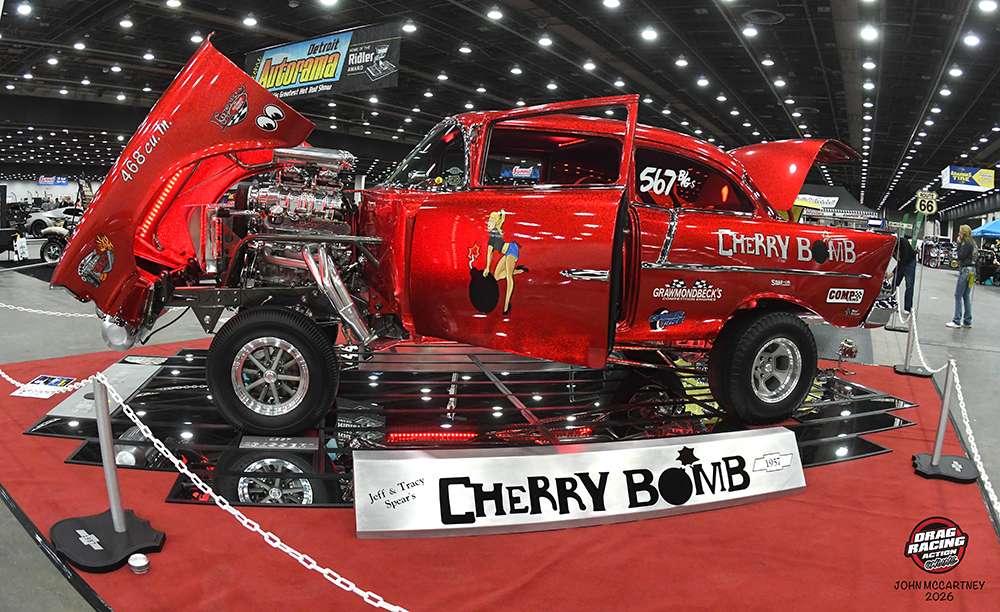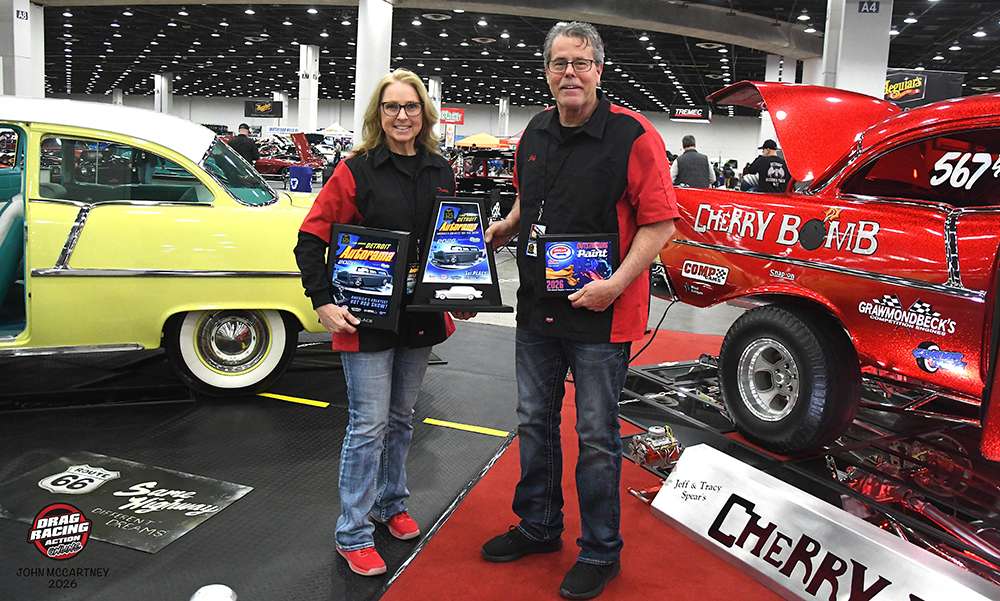 Jim and Tracy Spears picked up a number of awards at the 2026 Detroit Autorama. Best Gasser and best paint for their Cherry Bomb Gasser and a second place trophy for their 1955 Chevy.
