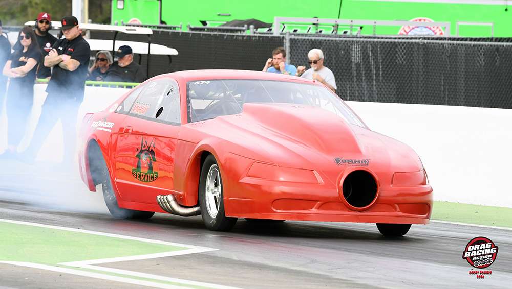 East Region NHRA Champ Jackie Fricke was #2 with a 3.484 and the blown car of Oregon racer Joey Severance was third with a 3.494. Canadian racer Daniel Flewelling was eighth in the quick field with a 3.604. Not making the show were Megan Smith and recent Gators Super Comp winner Kelly Kundratic.
