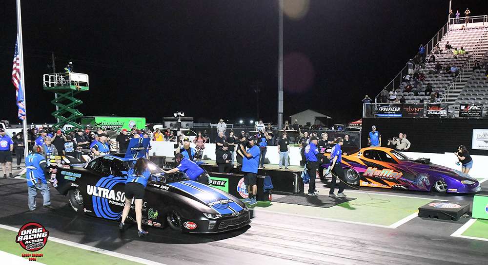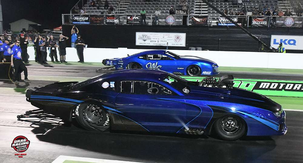 Jason Scruggs was the quickest qualifier in the field of fourteen Outlaw Pro Mods. In the final round, Cam Hensley faced Randy Weatherford. Hensley left Weatherford sitting on the starting line and secured the holeshot victory, running 3.600 at 204.66 mph to Weatherford’s quicker but losing 3.569 at 210.90 mph.