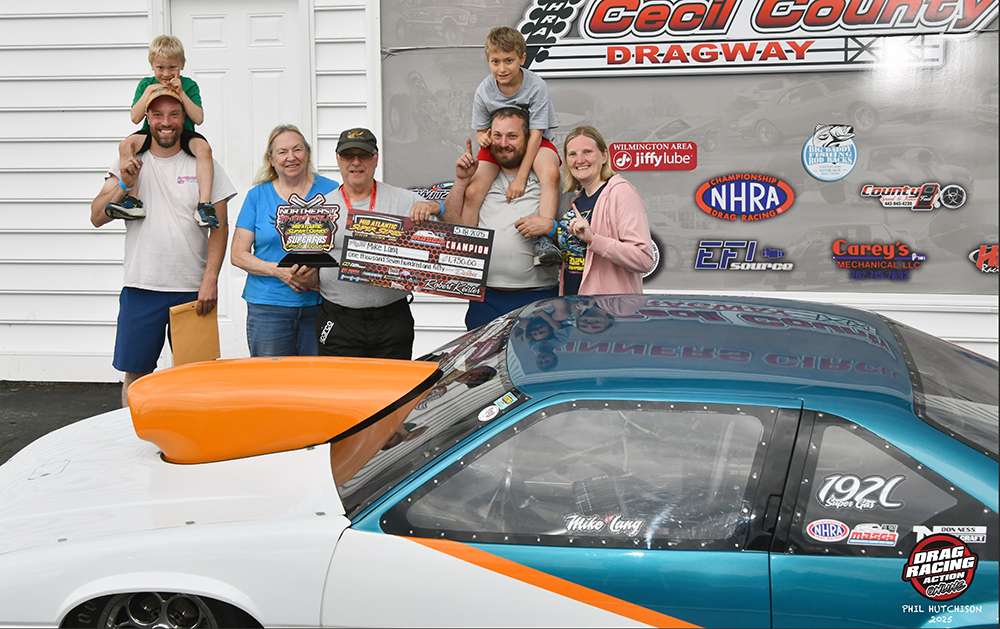 With the IHRA and NHRA series in full swing in the Southeast, 2025 Mid Atlantic champ Keith Mayers has had his hands full racing two cars. With a big race at GALOT NC, Mayers was not on hand to accept his ninth time champ award. But in true Mayer style, he filmed a thank you video for the party and had the gang in stitches as the Delaware racer is quite the nut. Mayers went on to win the IHRA event later on that night in Super Rod
