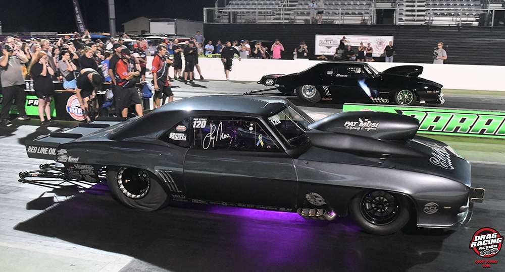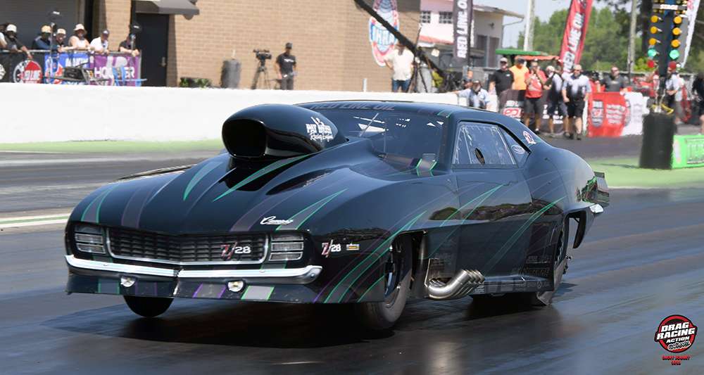 One of the largest Pro Nitrous fields in recent history came down to a unique final round pitting three-time PDRA Pro Nitrous world champion and series co-owner Tommy Franklin against Keith Haney, who’s the owner of the Mid-West Drag Racing Series as well as a multi-time champion in that series. When the tree dropped, it appeared to be Haney’s race as he left first with a .007 reaction time, but a flash of fire out of his hood scoop signaled the end of his day while Franklin drove past with a 3.676 at 206.64 in his Musi-powered “Jungle Rat 3.0” ’69 Camaro. Haney recorded a 3.966 at 148.01 in the runner-up effort.
