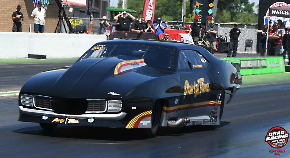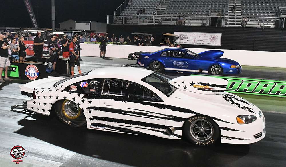 Mac took over the driving duties for the nitrous-fed, Musi-powered “Training Day” ’69 Camaro that Super Bowl champion Fletcher Cox raced to the postponed Carolina Nationals victory on Thursday evening. Mac’s march to his first final round started with a 4.010 at 185.89 on a first-round bye run. He nearly repeated that with a 4.018 at 189.47 to knock out Scott Kincaid’s 4.035 in the second round. After setting low E.T. of the first two rounds, Mac was second-quickest of the semifinals when he recorded a 3.950 at 187.50 to finish ahead of Ron Green’s 3.984 at 203.06.