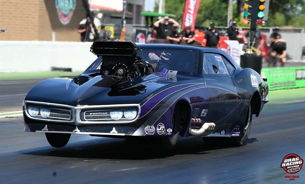 As the No. 1 qualifier in her screw-blown Al-Lee Installations “Purple Reign” ’68 Firebird, Salemi earned a first-round bye run, which she used to set low E.T. of the round, a 3.615 at 208.39. She was the second-quickest driver in the second round with her 3.643 at 207.02 to win over Travis “The Carolina Kid” Harvey, who slowed to a 4.436. Salemi then cut her second .010 light of the day and powered to a 3.626 at 206.95 to knock out home track hero Jay Cox, who laid down a 3.630 at 207.66.