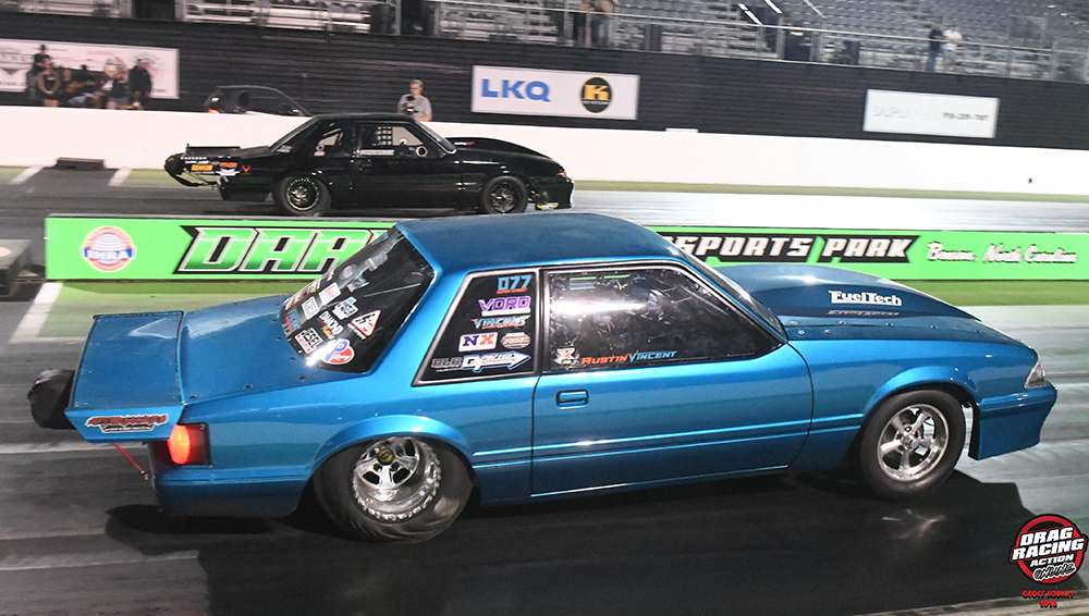 Following a 2025 season that resulted in a No. 2 finish in the Super Street points standings, Austin Vincent and the Vincent Performance team went to work over the offseason converting their nitrous-fed ’88 Mustang over to a FuelTech EFI setup. Those efforts paid off this weekend with a decisive win over reigning world champion and No. 1 qualifier Connor McGee in the final round. McGee left the line first, but Vincent powered ahead with a 4.517 at 167.01 to McGee’s 4.569 at 156.35.