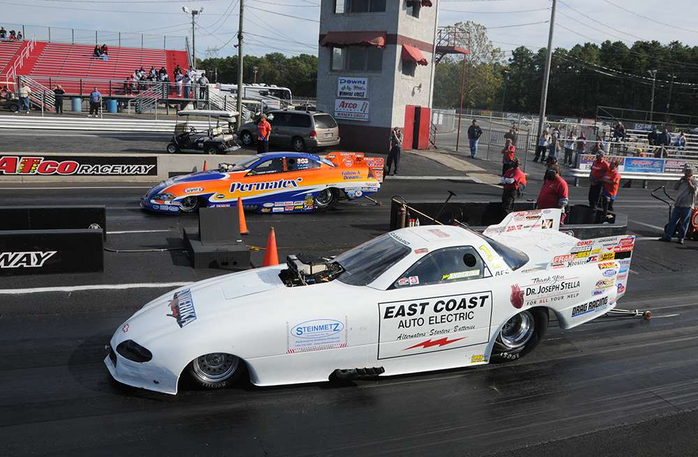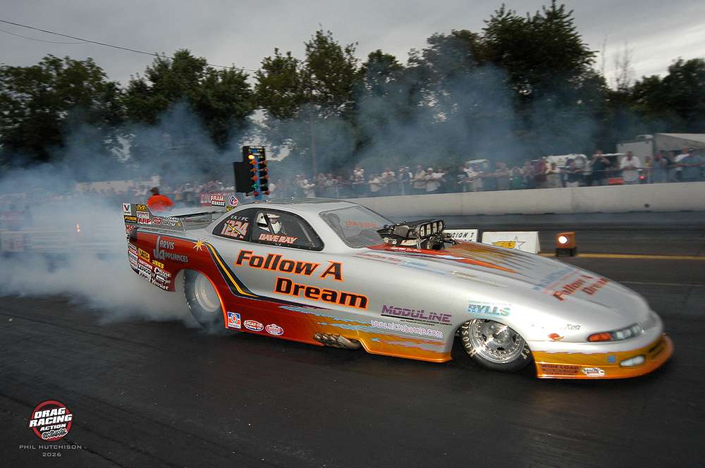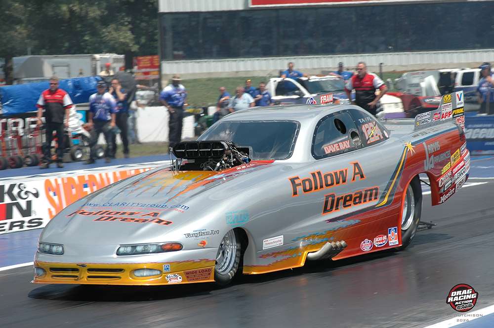 “The original dream was to work on a Fuel Funny Car. At the Keystones, I decided to form my own team. I wanted to find sponsors and build a Fuel car, but money was tight. So, I bought a Dan Page Super Comp car from Debbie DiGenova. My nephew Jamie drove. The Follow A Dream team was now reality.”