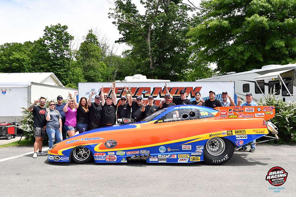 NY racer, shop owner and NHRA driver Phil Burkart has been the winningest driver for the Follow A Dream team and is excited about the teams move to a Nitro car in 2026. Burkart says, “We bought a Dodge Charger car from Texas racer Robert Schwab from Salt Lake City UT. We’re getting the car ready for a debut at the IHRA race at Richmond VA. in a few months. Schwab will stay on as tuner for the car.