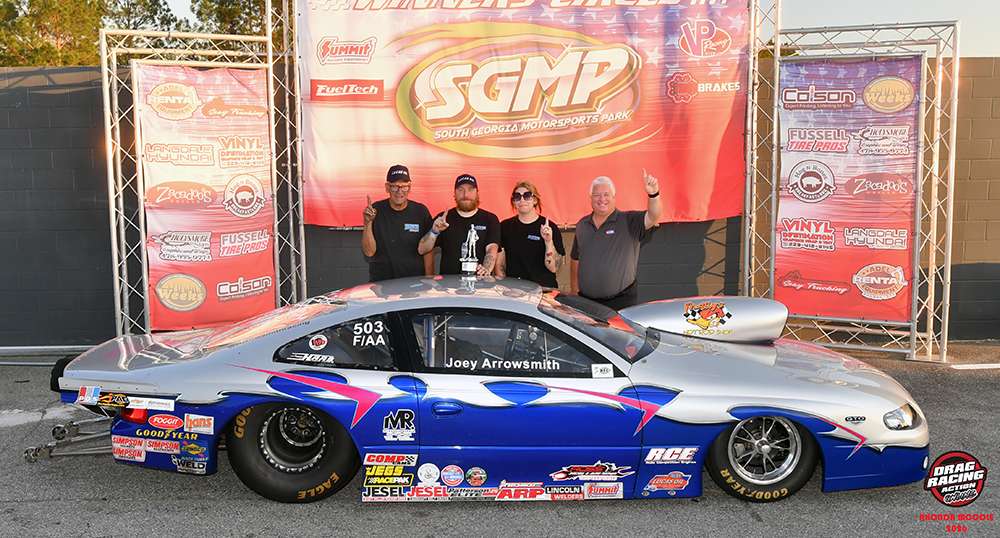 Joseph Arrowsmith from Ham Lake, Minn. put his ’06 GTO, F/AA in the winner’s circle beating the C/DA of Jared Kimbrough from Pace, Fla.  Kimbrough was tardy on the light and ran an under 7.006 on his 7.52 index as Arrowsmith won his fourth Lucas Oil Wally with a 7.840 on his 8.39 index.