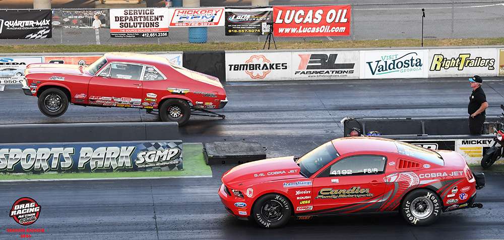 Brett Candies from Thibodeaux, La. continued his famous family racing legacy with a win in Stock in his ’10 Cobra Jet, FS/A over the C/SA ’70 Nova of Billy Wilson from Laurens South Carolina. Candies got the better light and added to his Lucas Oil wins with his 6th title with a 9.084 on his 9.07 dial as Wilson broke out with a 10.449 on his 10.45.